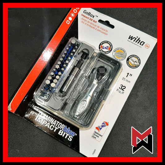 Wiha - Gobox 32 pc IMPACT Bit Set Terminator Blue w/ Mini Ratchet
